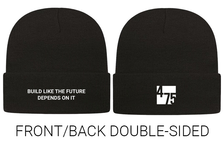 This comfortable and warm toque is great for the job site. It’s 100% acrylic, embroidered with the 475 logo on one side and our slogan “BUILD LIKE THE FUTURE DEPENDS ON IT” on the other side. It’s soft, comfortable, and warm! Fit length: 12"
